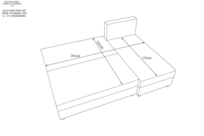 Funkcja spania: powierzchnia 201 × 131 cm – wygodne łóżko dla dwóch osób.