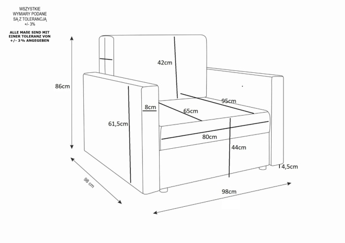 Wszystkie wymiary podano z tolerancją +/-3 %.